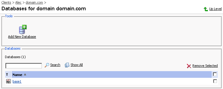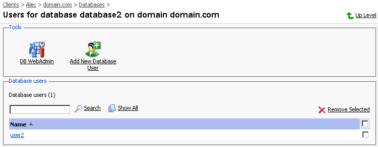 更にデータベースを編集するには、上記の手順を繰り返します。ドメイン管理ページに戻るには、[上へ]をクリックします。