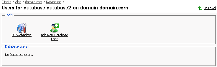 新しいデータベースおよびそのユーザの作成が完了したら、[上へ]をクリックします。データベース管理ページに戻ります。